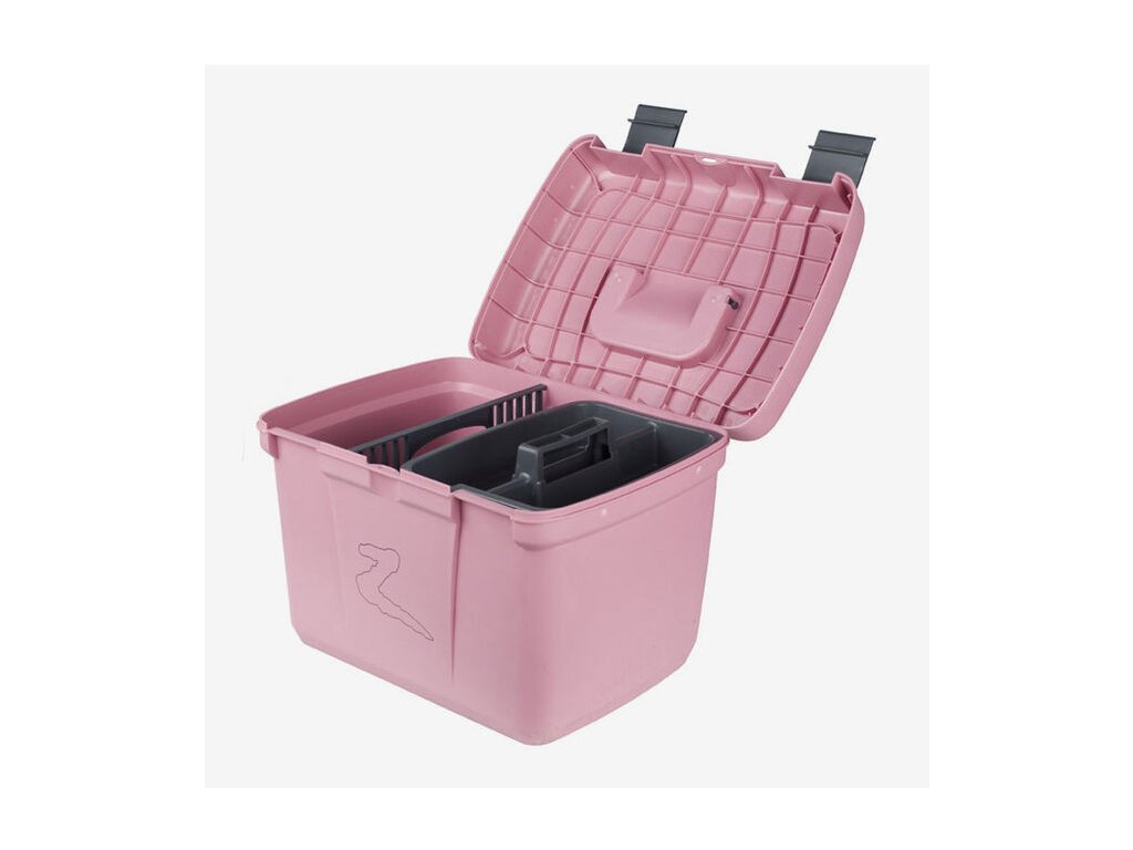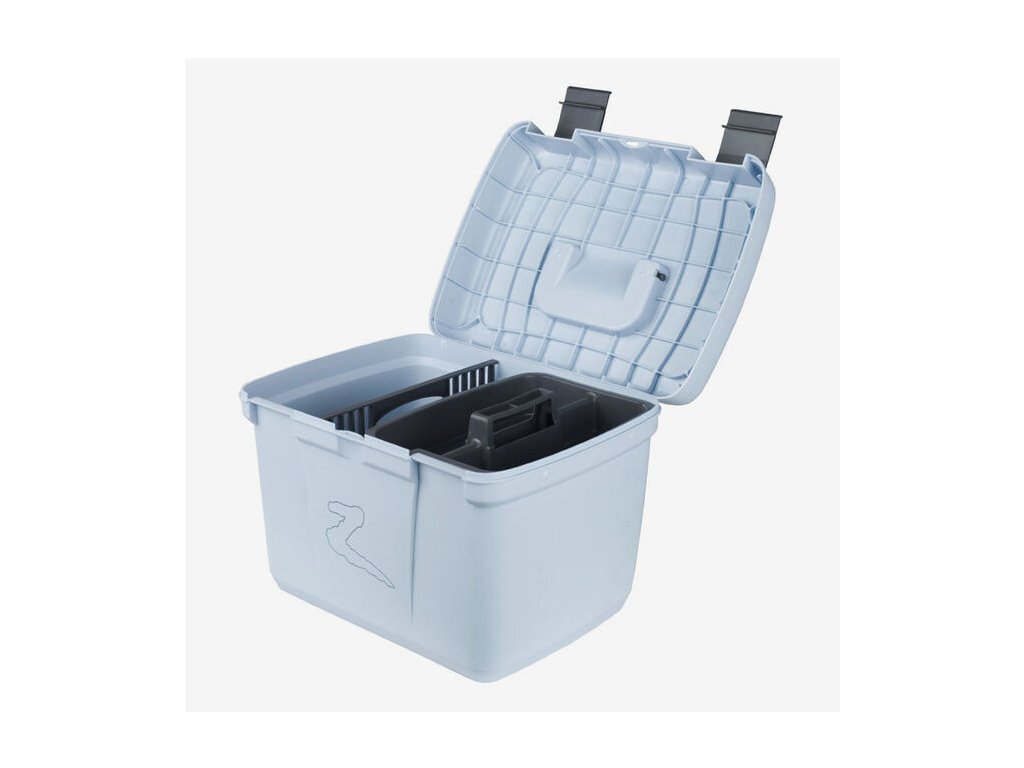 Box na čištění z pevného plastu od značky Horze , vyjímatelná přihrádka na drobnosti, oddělený odkládací prostor uvnitř.