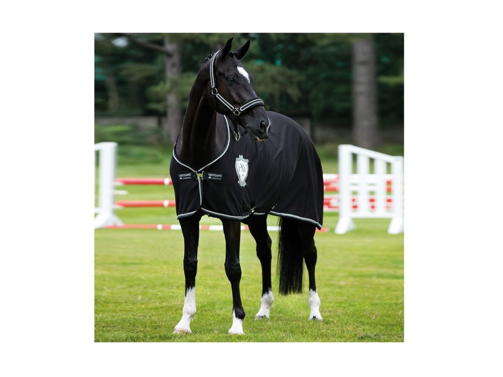 Díky tomuto designu je dobrou volbou pro výstavy, ale také zastane funkci stájové nebo transportní deky. Na prsou je zajištěna T-přezkou. Střed je fixován křížovými přezkami vedoucími pod břichem.