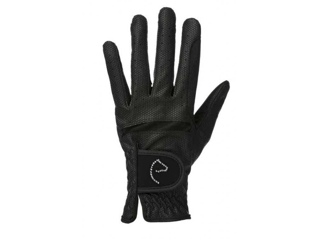 Jezdecké rukavice od značka Equitheme, vyrobené z polyurethane. zapínání na suchý zip, ozdobené štrasovým logem Equitheme. Materiál 60% polyurethane, 40% polyester. Barva: černá Velikost: XS, S, M, LDiskuze