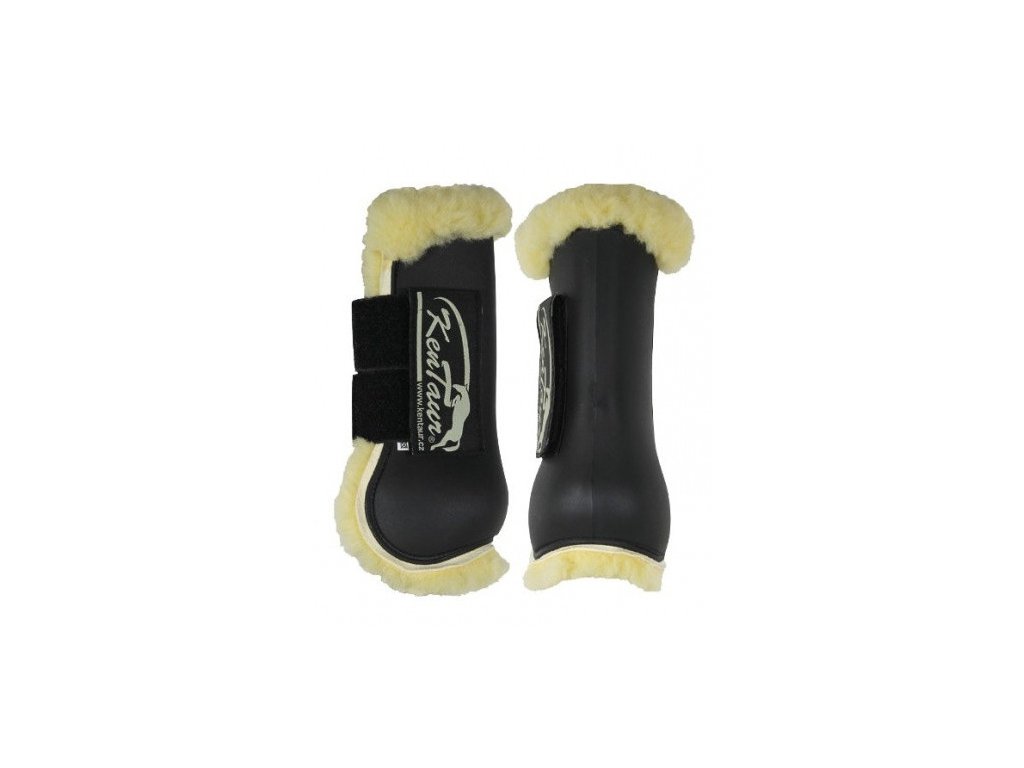 Anatomicky tvarované kamaše od značky Kentaur pro skokové ježdění s pevným výliskem chránícím šlachu. Zapínání na dva silné suché zipy, vnitřek je měkce polstrován pravým beránkem.