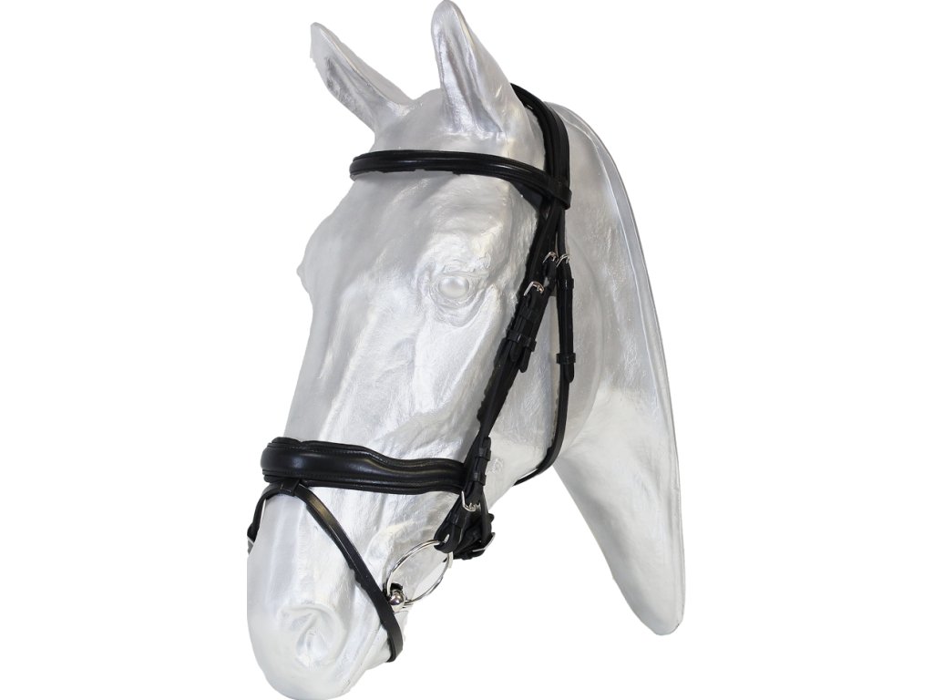 Uzdečka od značky KenTaur s anatomicky tvarovaným polstrovaným nánosníkem, anatomicky tvarovaný polstrovaný nátylník, včetně plátěných otěží.